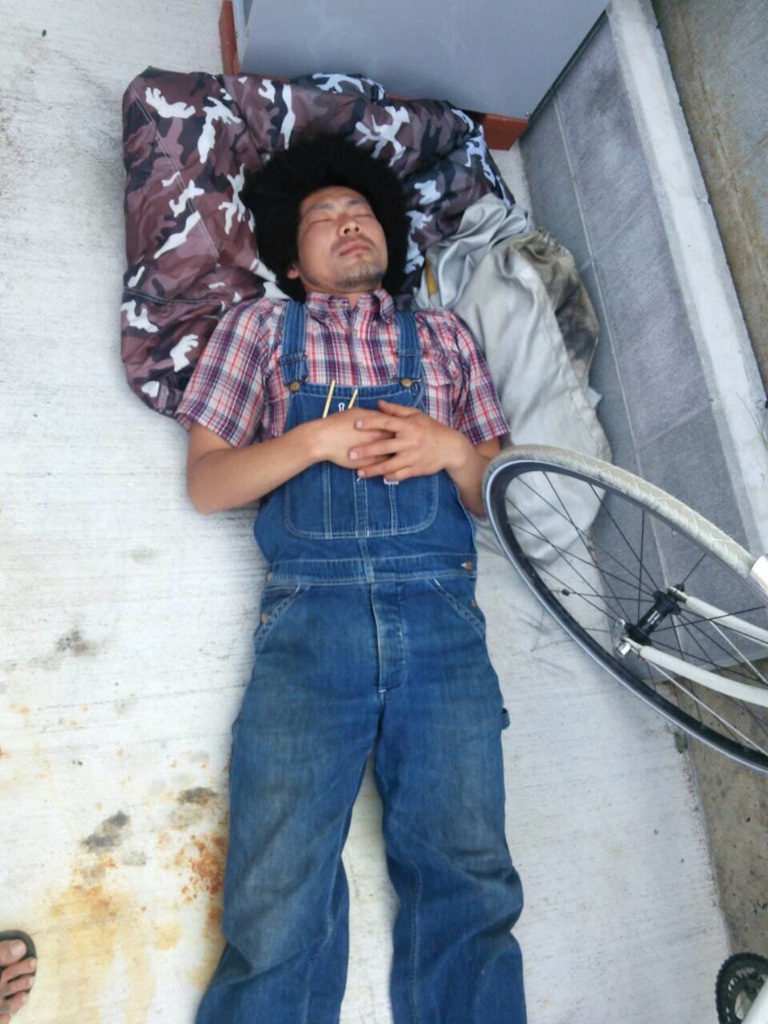 相変わらずどこでも寝るアフロ。アフロがいい枕になるようで、マジ寝。