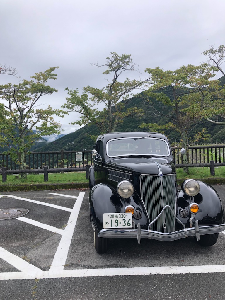 こちらは雨の丹沢湖。雨と旧車もなんかよい。