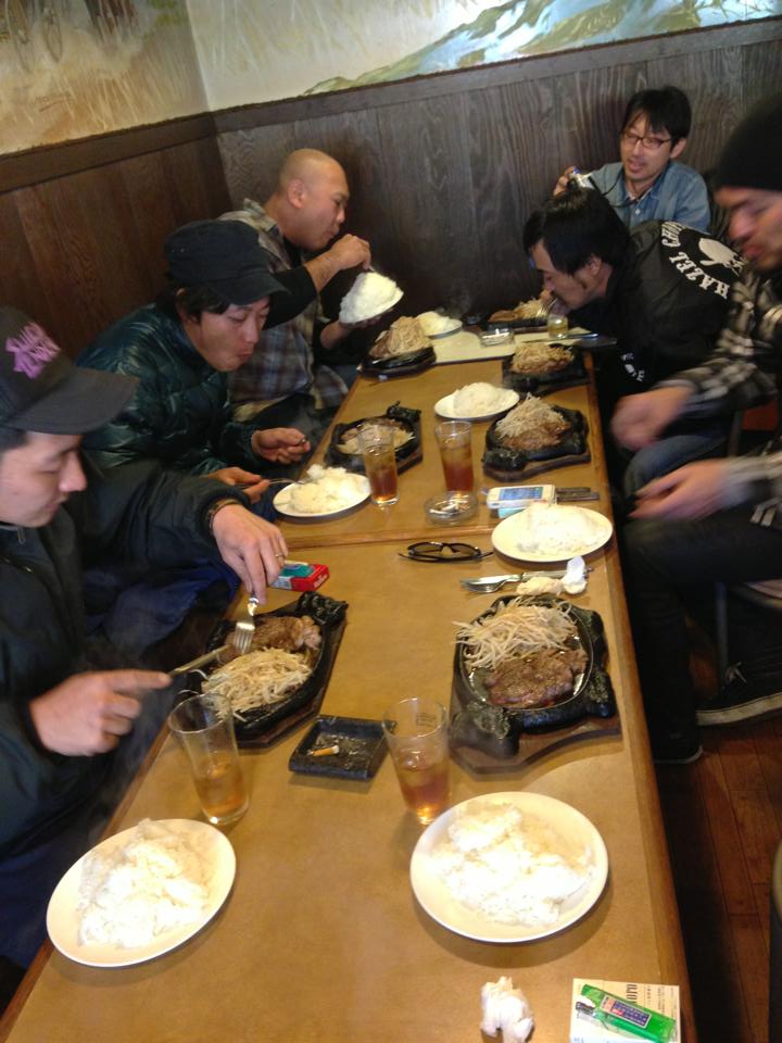走行写真はありません。で、やっぱバイカーは肉っしょ、肉!!ってことでステーキ屋へ…