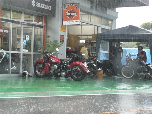 ピーカンからこの土砂降り。身動き取れません。お陰様でエンジンは冷えました。